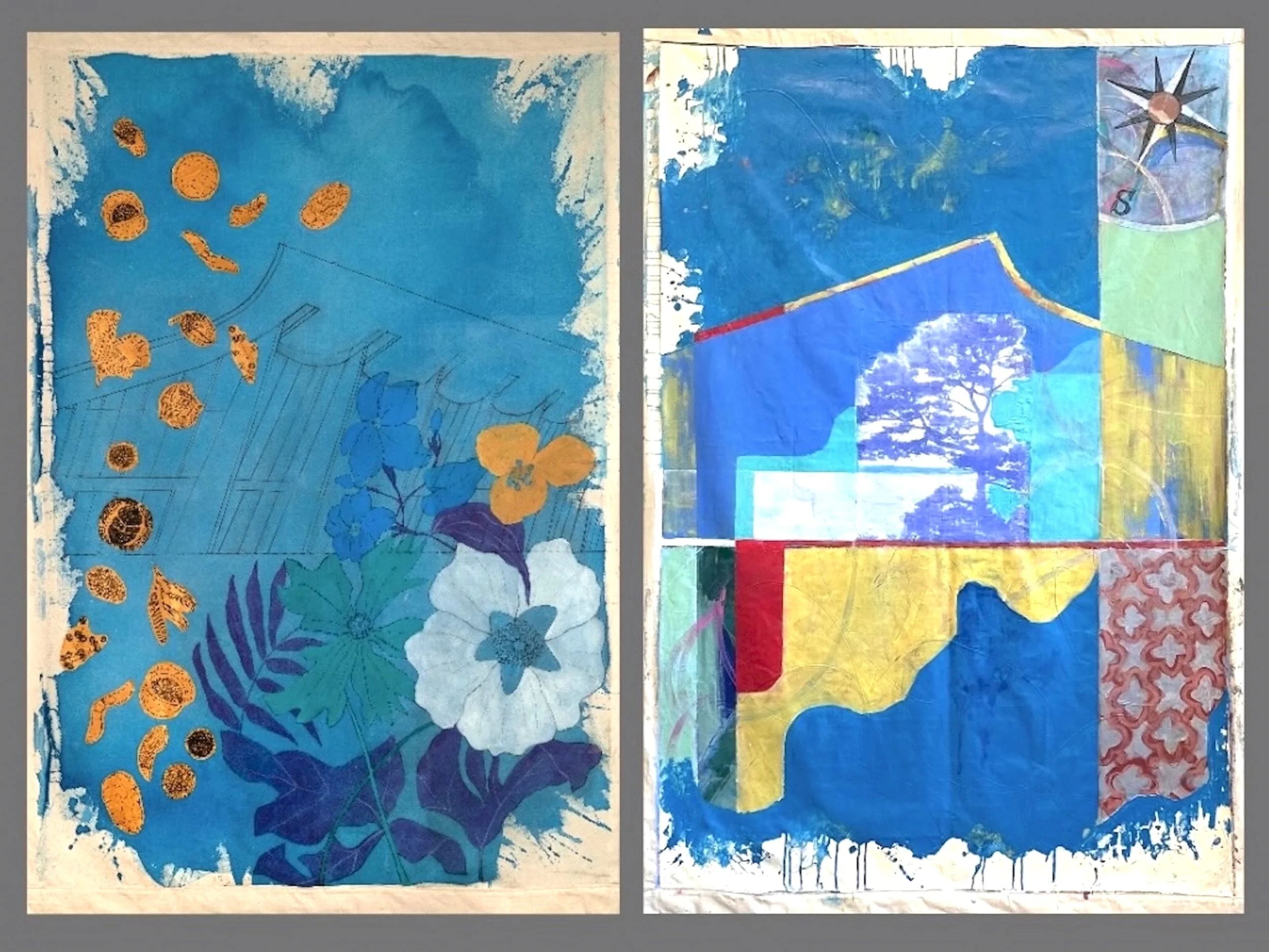 My work exists in the space between painting and illustration, abstraction and representation, rationality and emotion. I love careful delineation as much as gestural strokes and flowing paint.